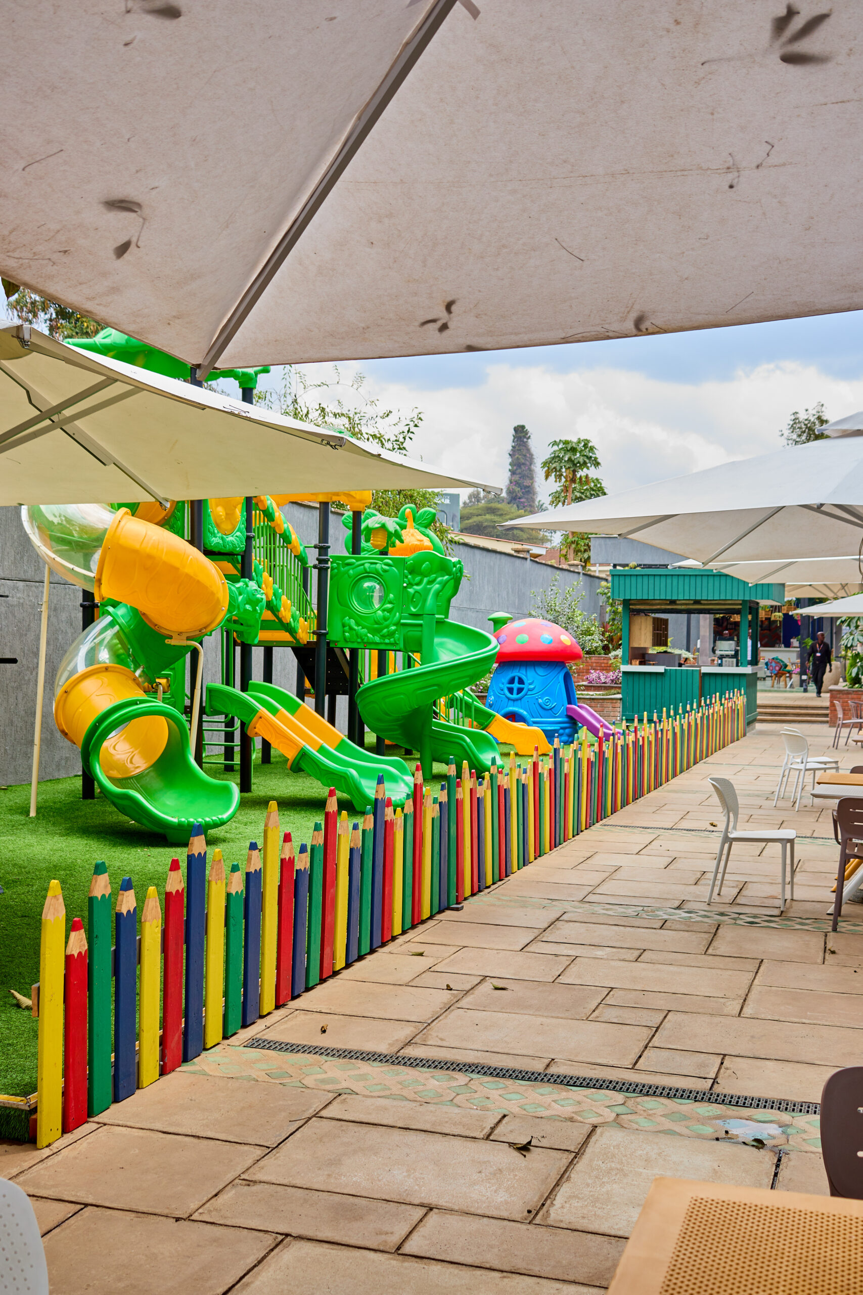 Surrounding the courts are open and well-landscaped outdoor areas, offering a refreshing and airy environment. The overall design blends functional sports architecture with modern aesthetics, delivering a space that is both active and inviting.