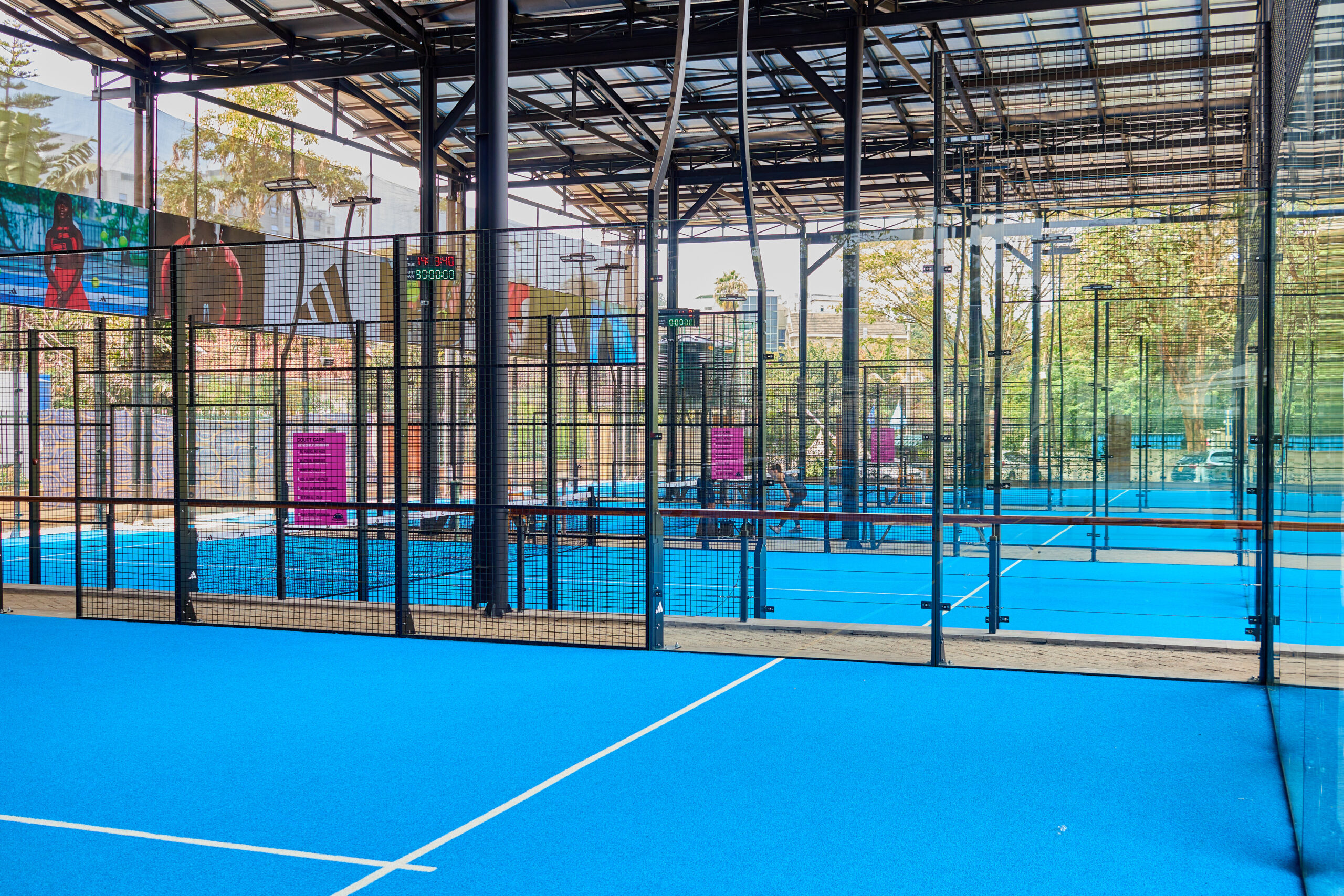 The facility features multiple state-of-the-art padel courts, built with durable materials and high-performance surfaces to ensure consistent play and long-term use. Each court is enclosed with glass and metal framing, providing excellent visibility and a professional sporting atmosphere.